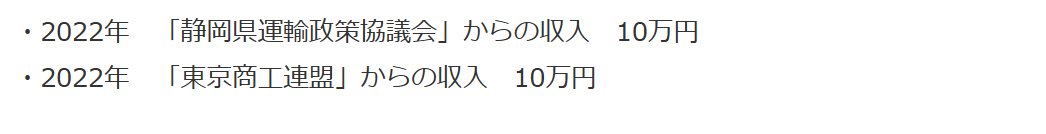 这其中包括2022年来自静冈县运输政策协议会的10万日元收入,以及同年东京商工联盟提供的10万日元捐款等,多笔资金在政治资金收支报告书中均未如实反映,已确认的未记载总额至少达到57万日元。