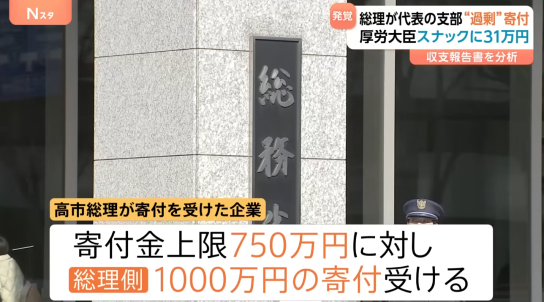 这个金额相较于片山的就大得多了。高市的相关支部于去年8月从一家东京企业收取了1000万日元捐款,但根据政治资金规正法规定,结合该企业规模,其年度捐款上限仅为750万日元,实际收受金额已超出250万日元。