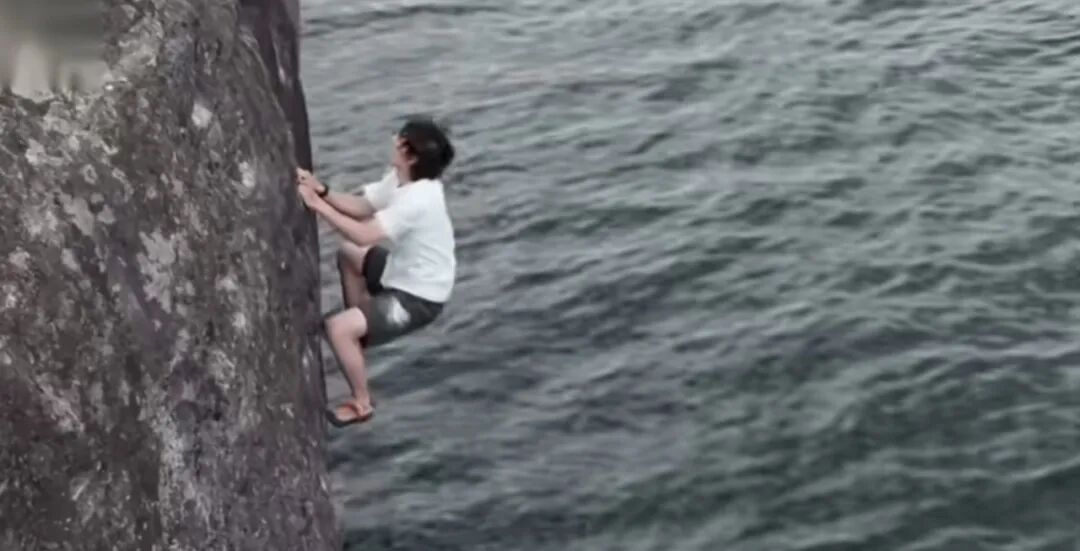 收藏知名男星王一博录综艺无保护措施徒手攀岩,手滑坠海