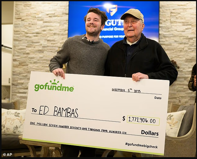 在密歇根州的一场小型仪式上,人们把那张厚重的支票交到老人手里,并宣布:“这是 GoFundMe 历史上最大的个人筹款之一。”
