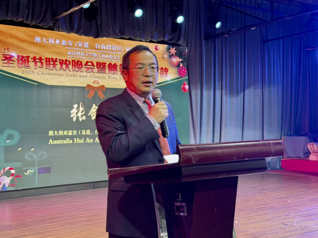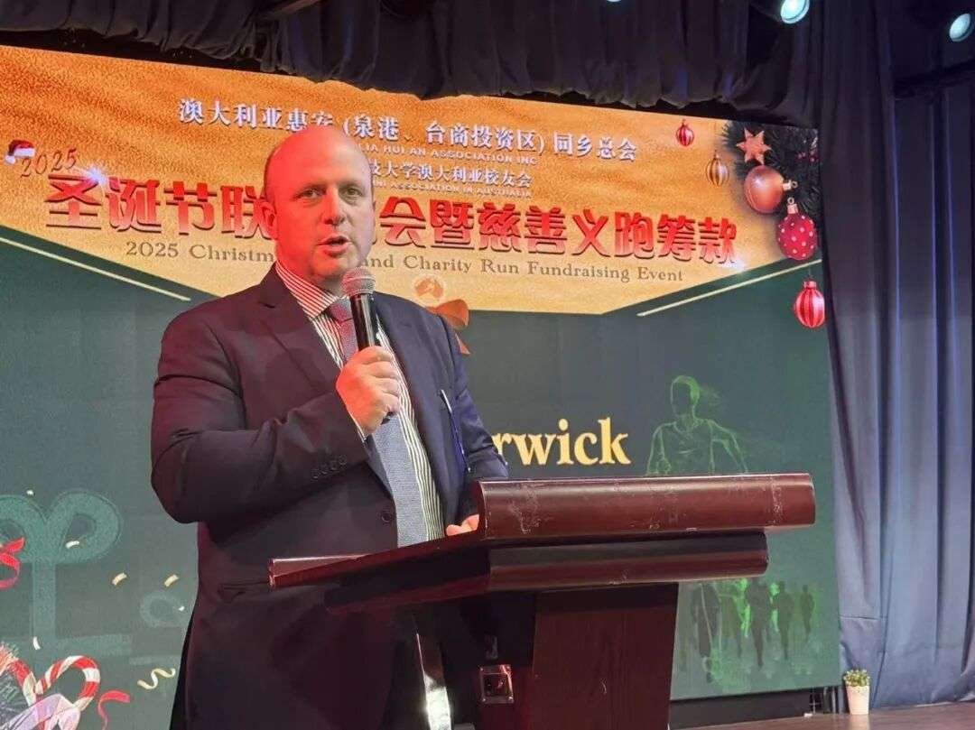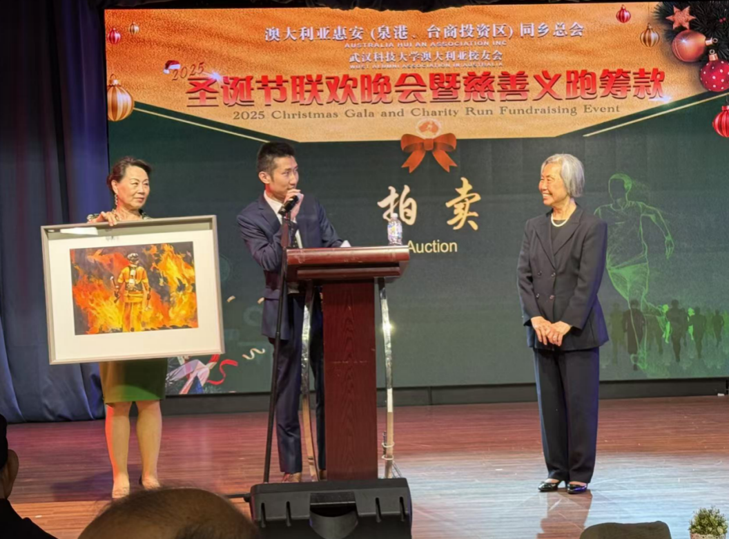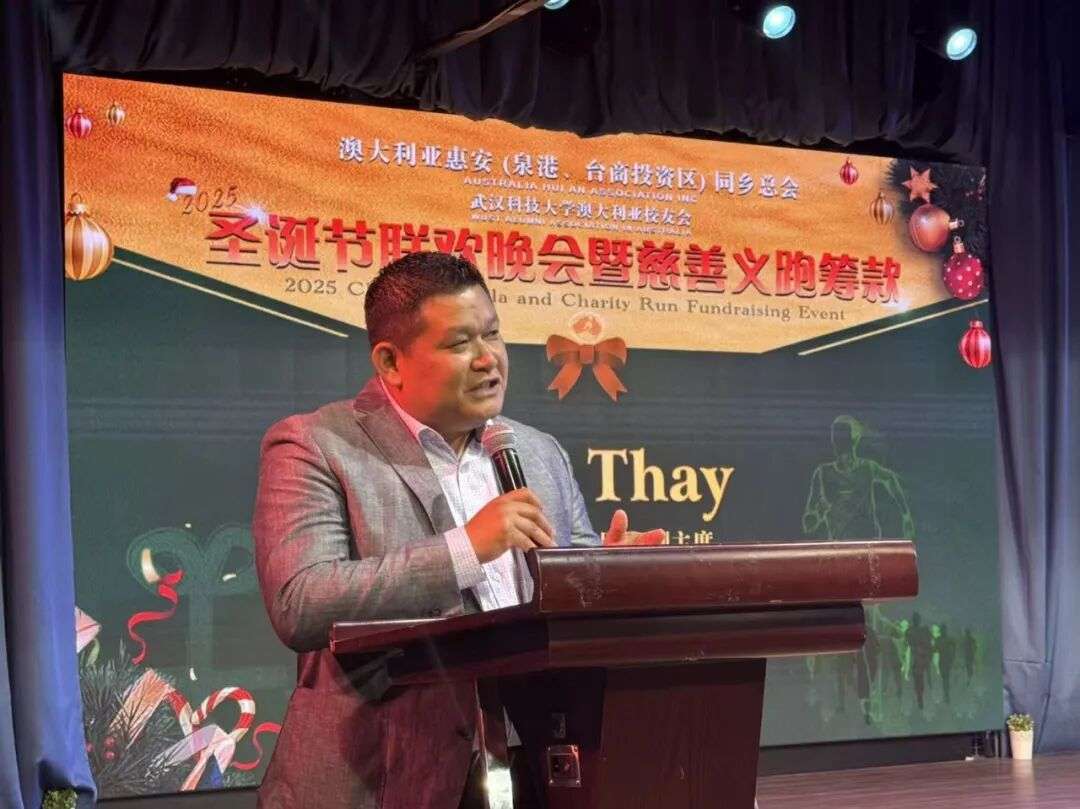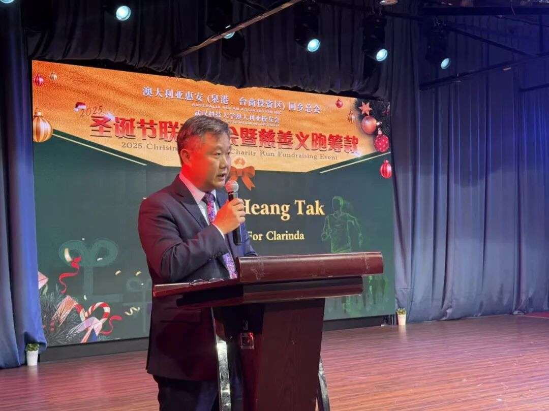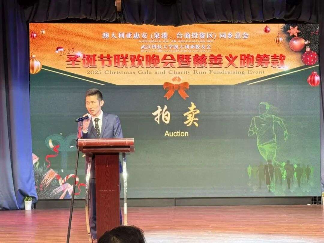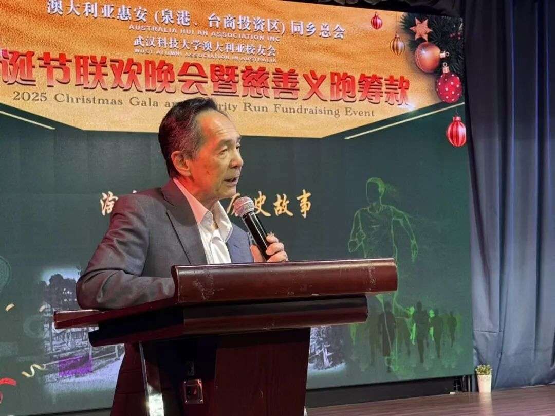 澳大利亚惠安同乡总会会长张剑洋先生首先致辞。他语气诚挚地说,尽管身在异国,但惠安人勤劳、善良、守望相助的精神从未改变,慈善不是口号,而是一种行动,一种责任——一种延续在血脉深处、代代相传的文化力量。他对于前不久发生的香港大火深感痛心,希望借由慈善义跑和圣诞晚宴,让更多人参与到对于香港同胞和澳洲华社文化的关爱中来。
