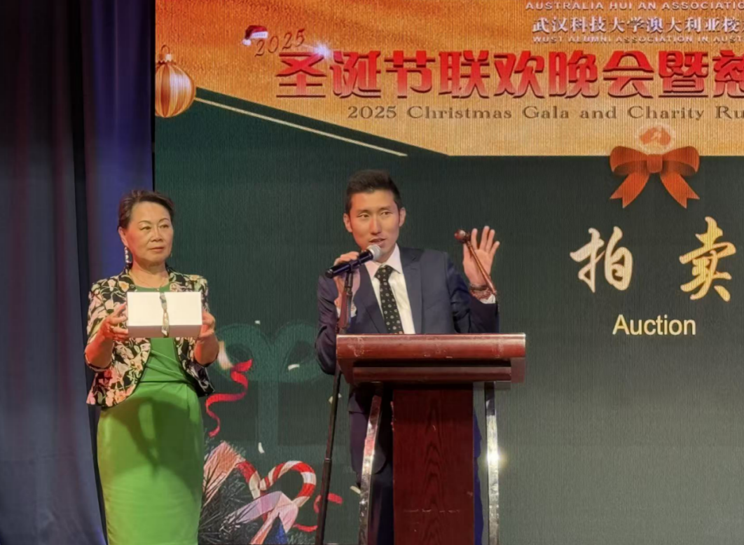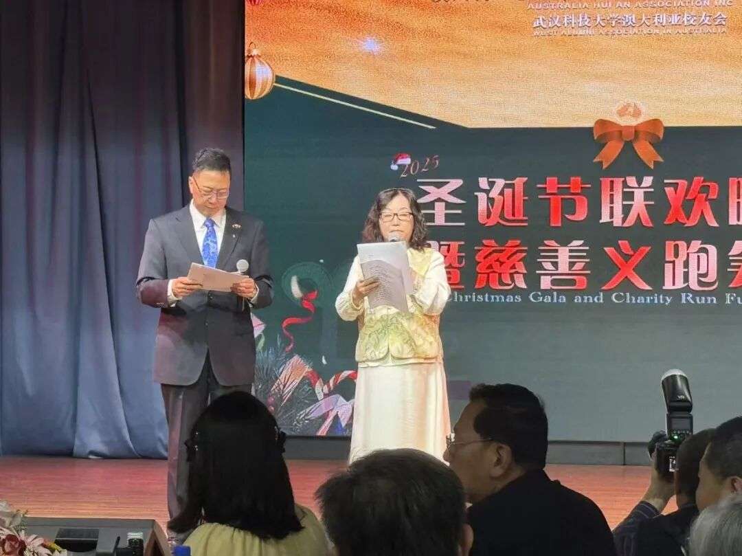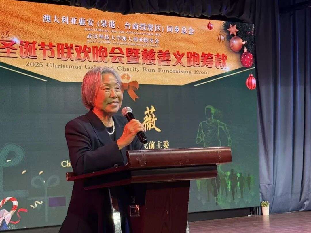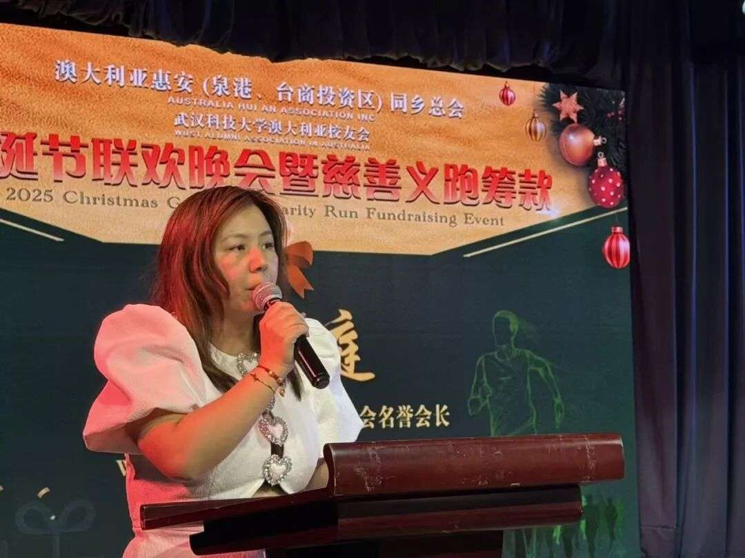 澳大利亚武汉科技大学校友会代表 Lillian女士 在致辞中表示,在异乡相聚本身就是一种难得的缘分,而慈善更让社群的心紧密连在一起;愿每一份善意都化作光芒,照亮需要帮助的人,也照亮我们共同的未来。