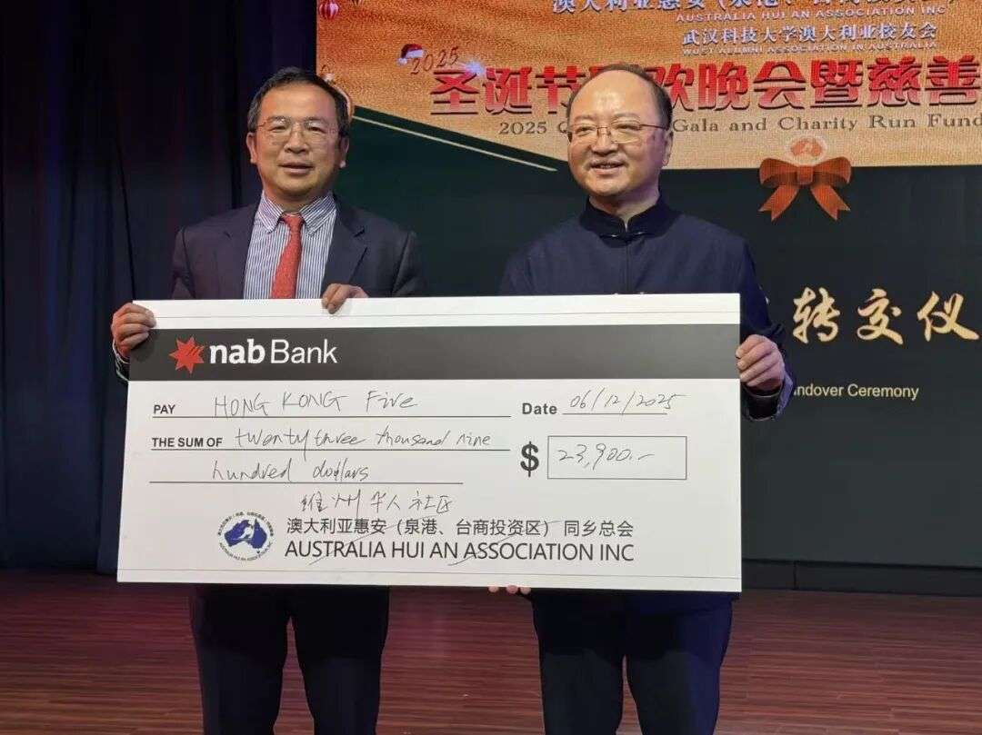 当即,主办方直接举行了为香港火灾募集的善款交接仪式。张剑洋会长代表同乡总会,将23900澳币的善款郑重移交给中国驻墨尔本总领馆,通过总领事馆转交给香港有关方面。张剑洋先生特地将支票上的落款修改为维州华人社区,他表示,这不仅仅是一个同乡会的成果,更是整个维州华人社区的善心。据悉,悉尼、堪培拉与塔州多地的社团也在此晚宴募捐中纷纷伸出援手,共同点亮这场跨越地域的爱心行动。