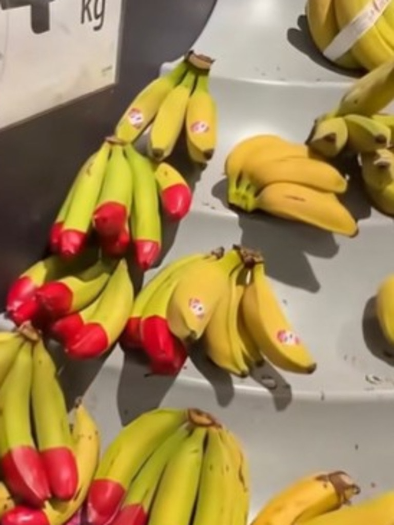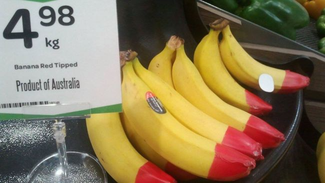 他在Woolworths看到一些香蕉的尾端被染上了鲜艳的红色蜡,于是发出灵魂拷问:“有没有澳洲人能解释一下这到底是啥情况?”