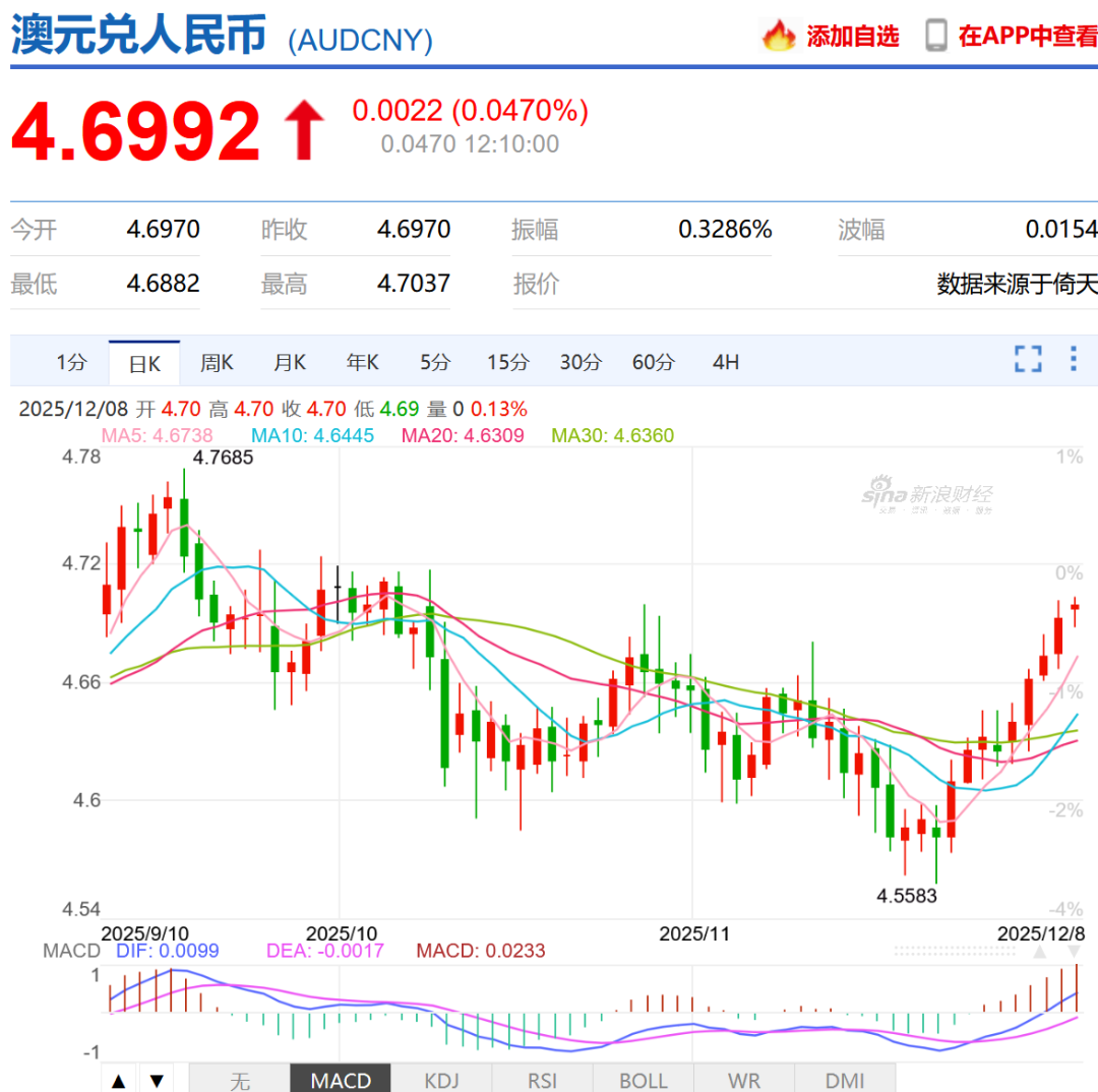 澳元近期则继续走强。