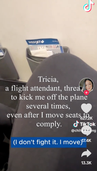 在Charlet之前发布的TikTok视频中,可以看到Charlet一直与一名空乘人员进行耐心交流,但是该空乘却坚称Charlet“态度蛮横、行为失控”。