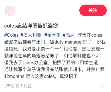 收藏中国留学生漏扫洋葱被Coles当成小偷! 拍学生证还禁入一年! 评论区太热闹了...