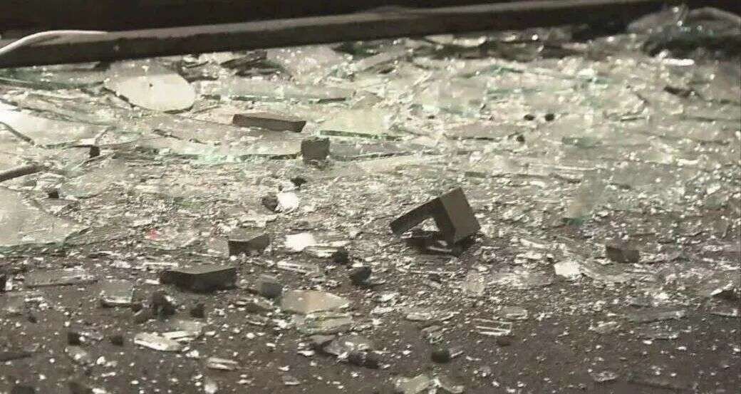 当地时间8日,日本青森县八户市一酒店地震后,玻璃破碎并散落了一地。图源:央视新闻
