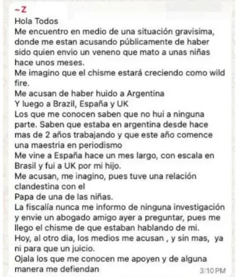 “他们指责我逃往阿根廷,然后又去了巴西、西班牙和英国。了解我的人都知道我没有逃往任何地方。他们知道我一直在阿根廷工作,并且在这里攻读新闻学硕士学位。”