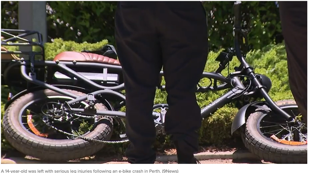 在Perth,一名十四岁的少年在一次e-bike撞车事故中腿部严重受伤。