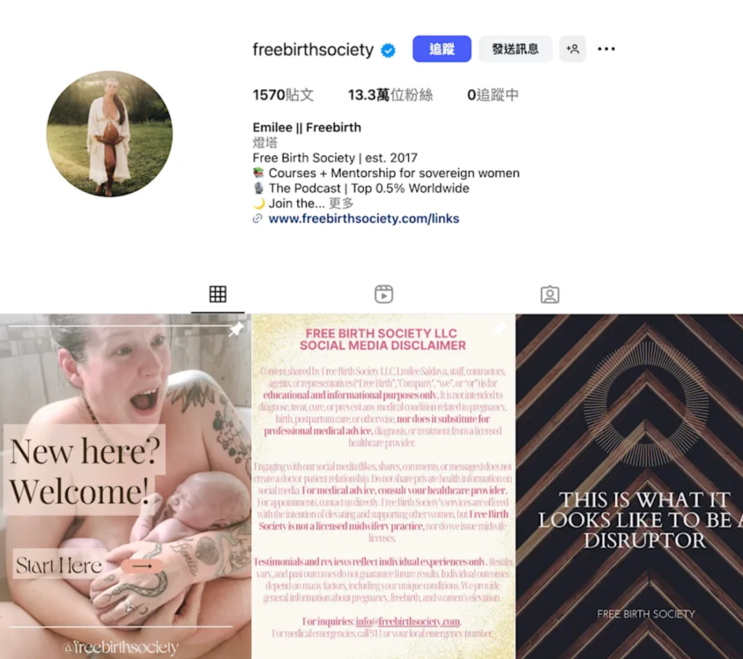 当时在现场还有另外一名网红,她叫Emily Lal,是活跃在Instagram上的网红,账号名The Authentic Birthkeeper。