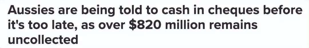 澳大利亚政府敦促民众尽快兑现手中可能存放的支票,以免支票不再被接受,否则可能会有超过 8.2 亿澳元的款项无法收回。