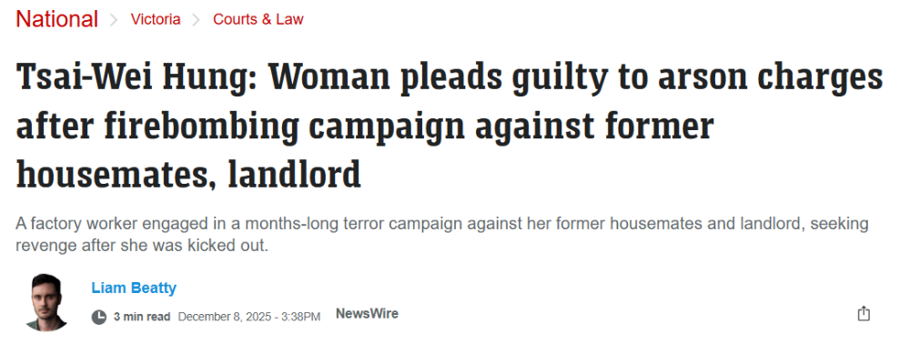 收藏“去死吧!”墨尔本华人女子长达数月报复房东及室友:纵火烧车、烧房、威胁勒索!