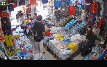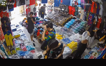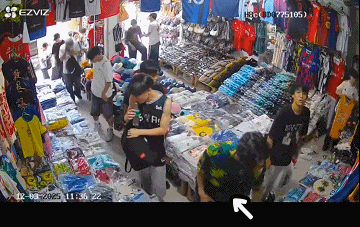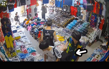 在视频中可以看到,在摆满了 T 恤、帽子、凉鞋等纪念品的商店里,三个穿着短袖的少年正在四处查看商品。