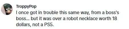 我曾经也遇到过同样的麻烦,是来自老板的老板......但事情是因为一条价值 18 美元的项链,而不是 PS5。