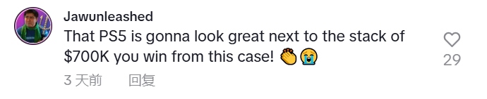 那台 PS5 放在你从这起案件中赢来的 70 万美元旁边一定很好看!????????