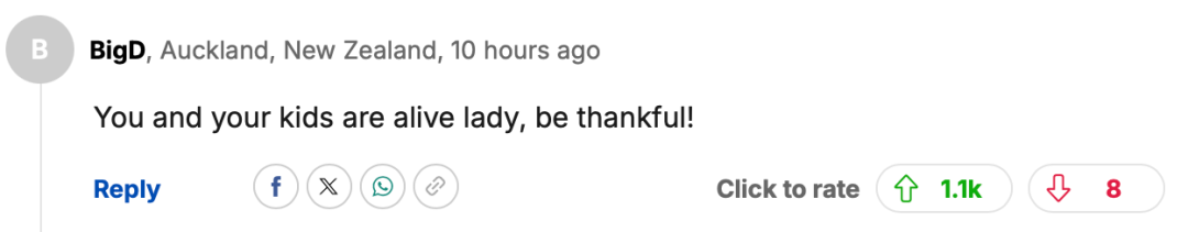 “女士,你和你的孩子们还活着,你应该心存感激!”