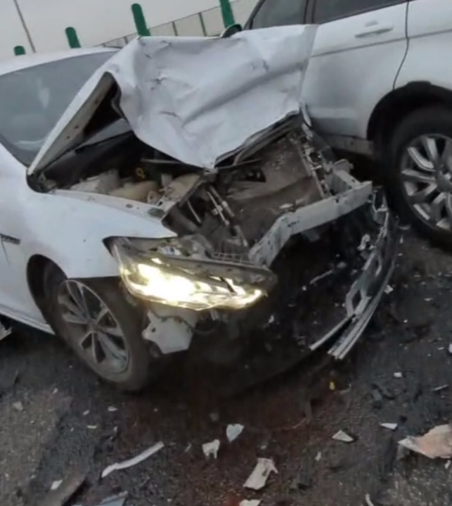 帖主贴出的图片中,可以看到她是遭遇了一场重大车祸,车头都已经完全撞变形了。