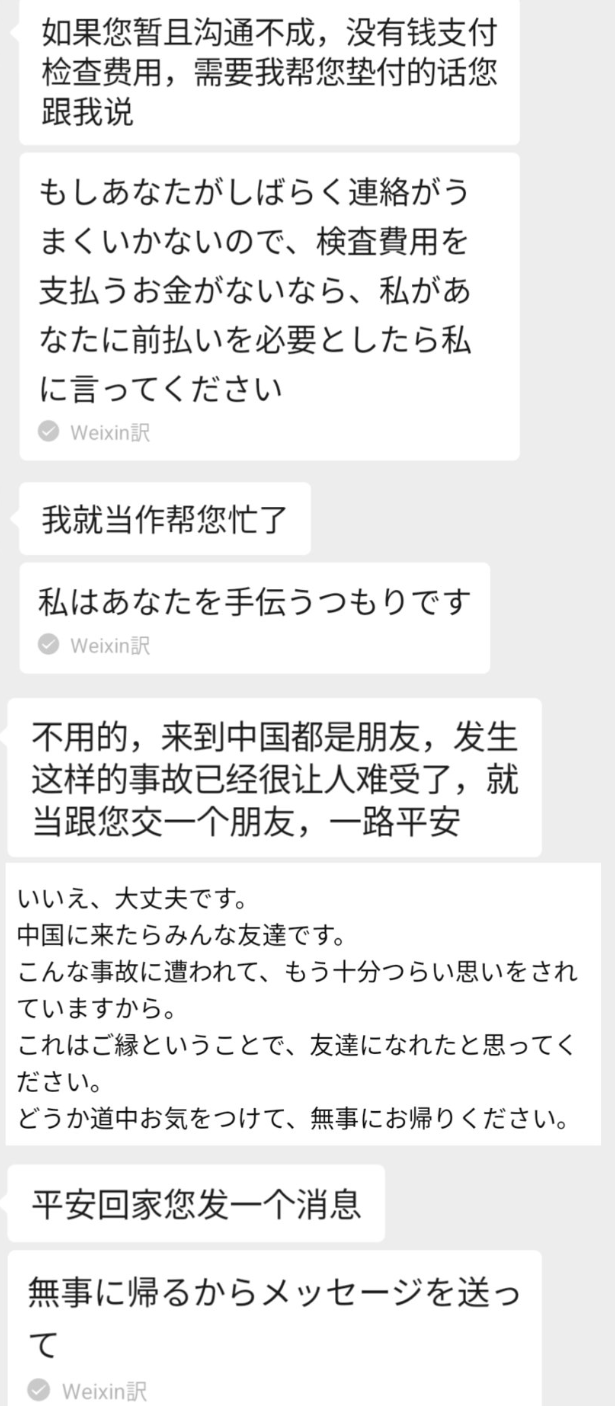 “当时我也撞到了头,需要进行很多细致的确认。但即使语言不通,也从来没有被敷衍对待。