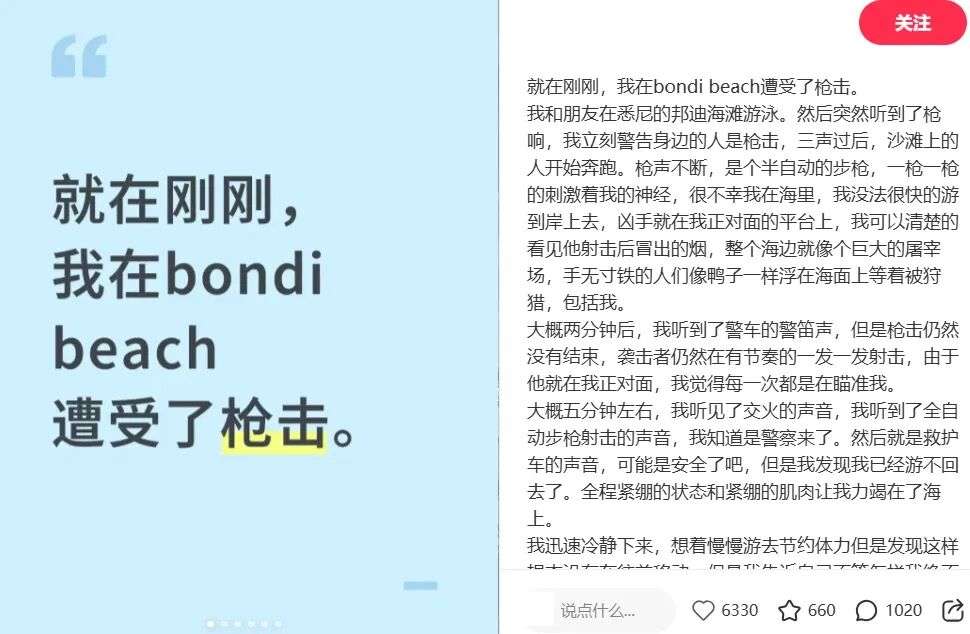 华人亲历悉尼枪击案,在海里力竭,对面就是枪手,生死一瞬间,被19岁男孩救下!