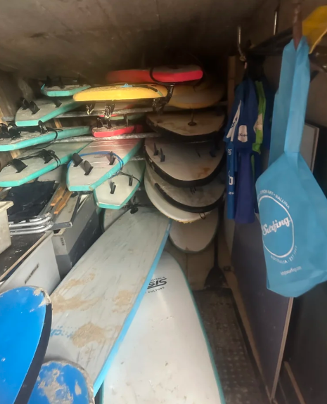 上岸后,到处都是女人和小孩的哭声,安全员带他躲在一个放置冲浪板的小仓库,直到直升机抵达支援,确认安全才离开。