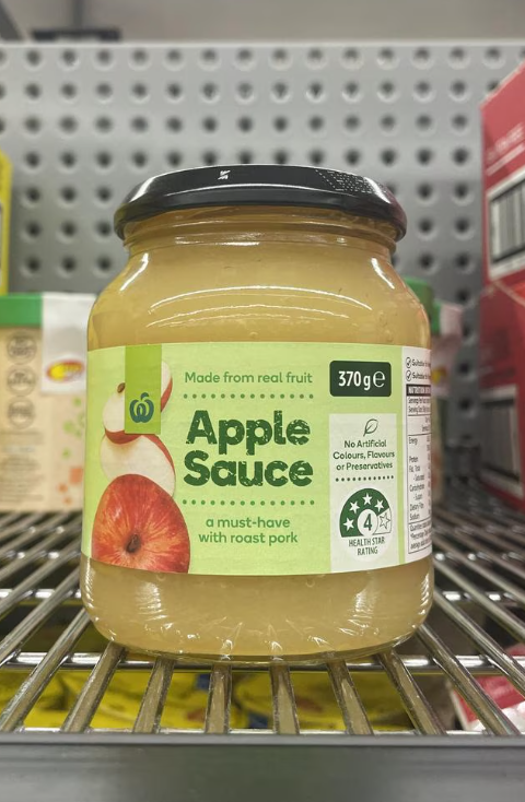 如果想少吃糖,选Woolworths的苹果泥会更好。