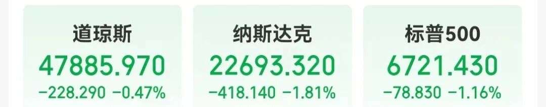 当地时间12月17日,美股三大指数集体收跌。道指跌0.47%;纳指下跌418.14点,跌幅1.81%;标普500指数跌1.16%。