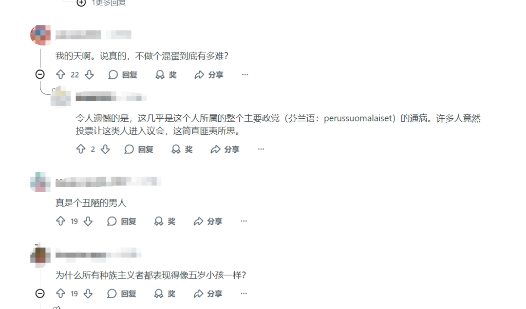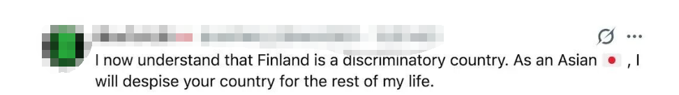 更激烈的声音甚至直接把矛头指向国家层面,认为这起事件暴露出芬兰社会对亚洲人的轻蔑态度,“作为一个亚洲人,我余生都会鄙视你们的国家”。