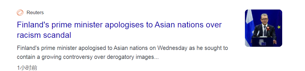 据报道,当地时间17日,奥尔波向中国、韩国、日本民众致歉,措辞相当严肃,核心意思只有一句话:“种族主义和歧视在芬兰社会没有立足之地。”