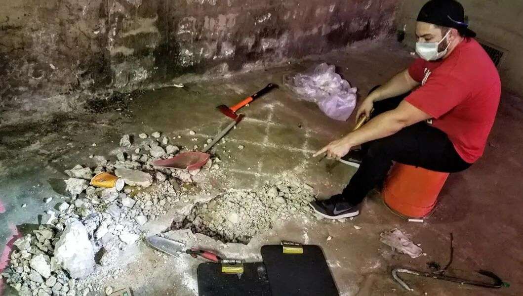 之后,麦克开始动手,一点一点地拆掉地下室。