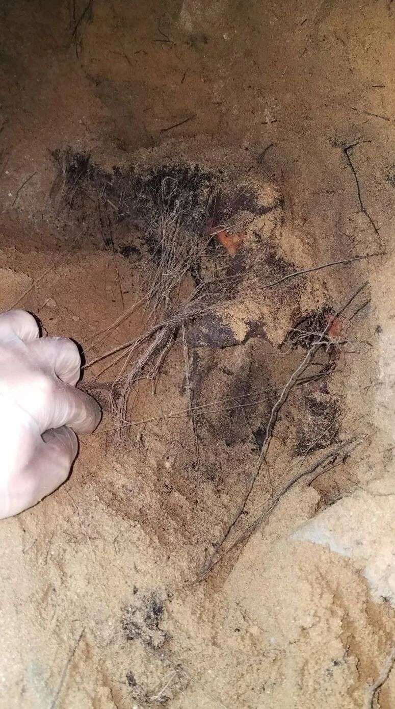 紧接着他们意识到,那不是什么蛛丝,是被深埋地下多年后的,衣物纤维。