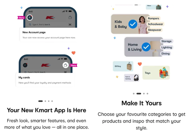 至于新版KmartApp有哪些变化,更新后用户会看到提示,说App有了“全新外观”和“更聪明的功能”。你可以选择自己感兴趣的商品类别,App也会推荐一些你可能没注意过的商品作为灵感。