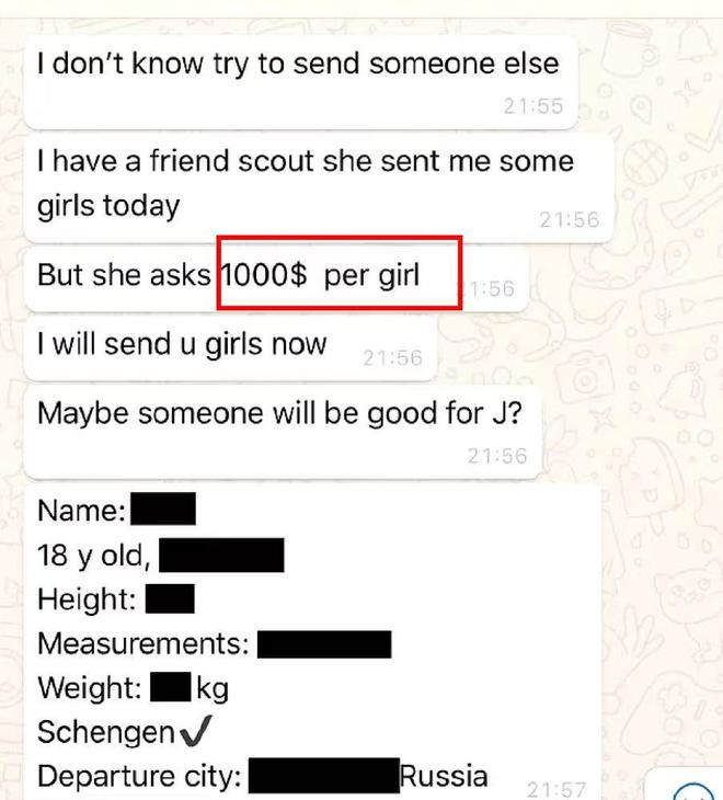 另外一张恶魔岛内部的聊天记录显示,一名18岁的俄罗斯女孩,“售价”为1000美元(约7000rmb)。可能是为了提高售价,聊天记录里还标上了女孩的身高、三围、体重等信息。