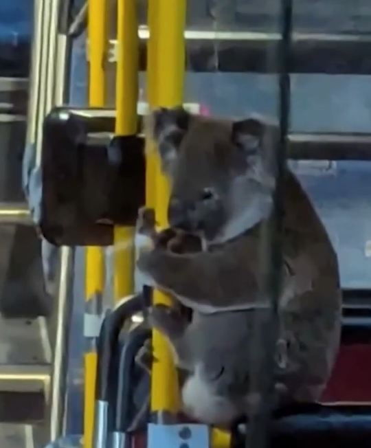 收藏澳大利亚一野生考拉误闯城市道路,被热心公交司机带上车,紧紧抱住扶手