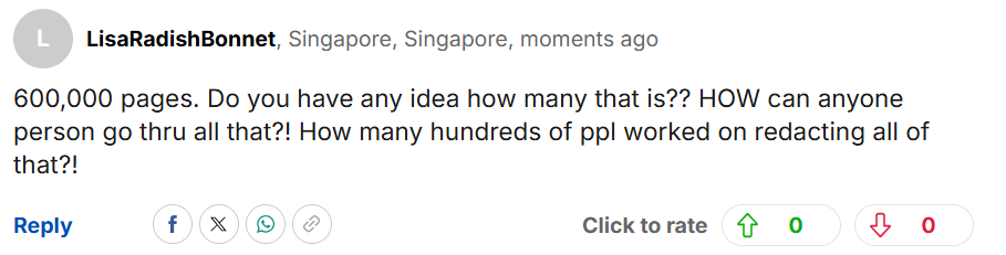 “60 万页啊!你们知道这是多大的工作量吗?!谁能把这些全看完啊?!怎么也要有几百号人在忙着处理这些吧?!”