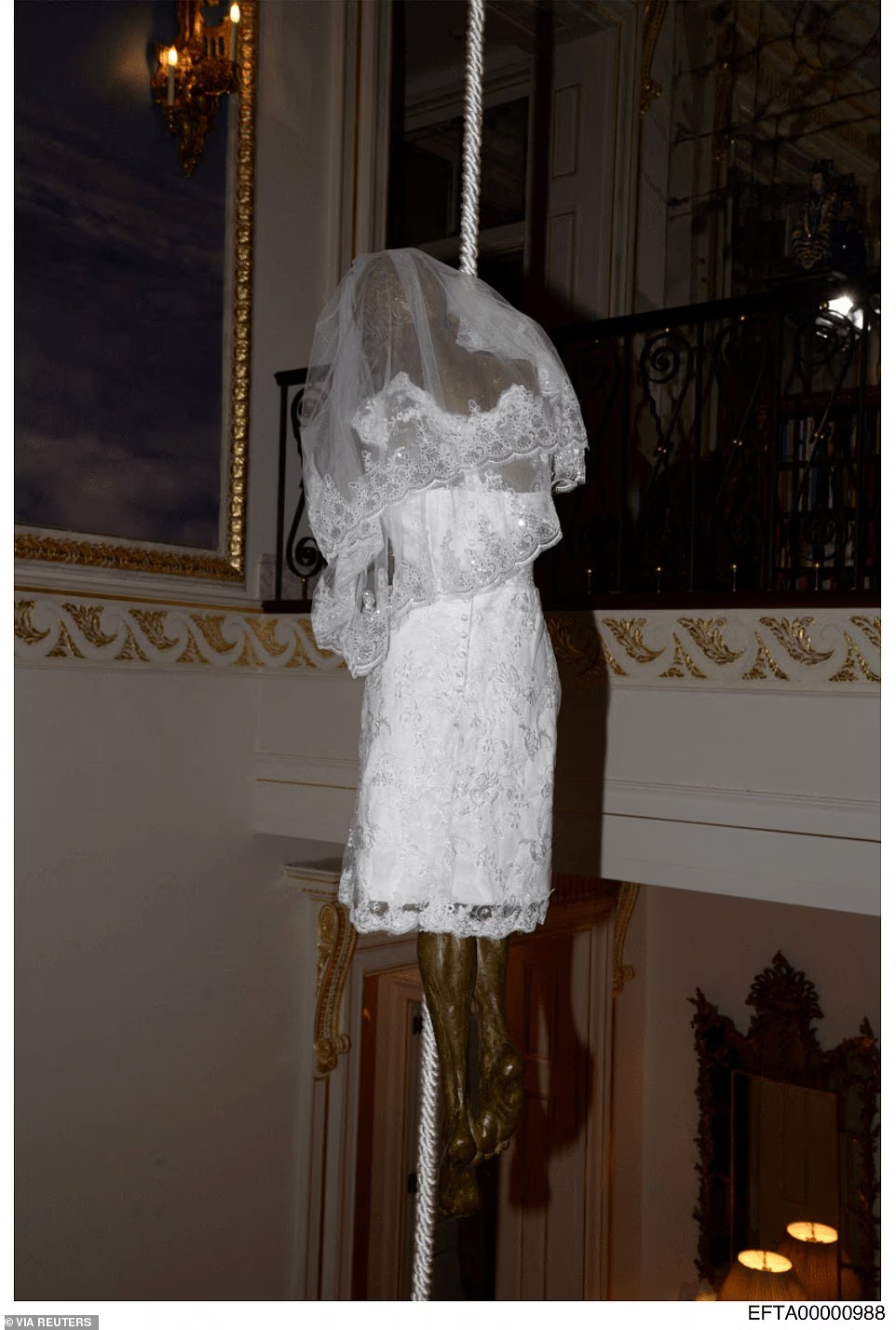 但最吸引眼球的是,还是一副画着克林顿穿连衣裙、高跟鞋的油画。