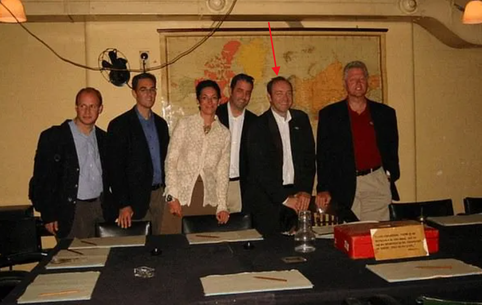 因主演《美国丽人》《纸牌屋》而享誉全球的奥斯卡影帝凯文·史派西,也曝出一张和爱泼斯坦、克林顿等人的合影。