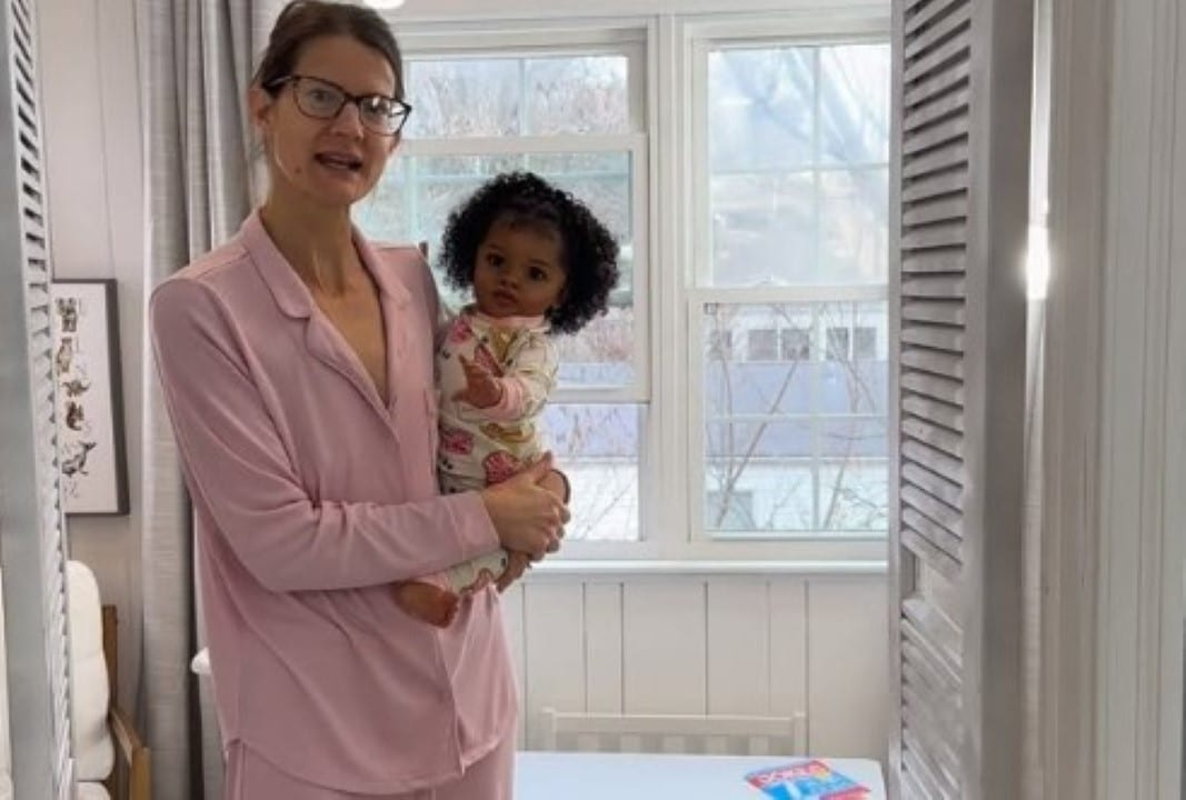 吉娜在看到仿真娃娃后就决定“领养”一个回家。娃到家后,她沉迷于给“新宝宝”哄睡、晒太阳、做游戏,这既满足她当妈妈的需求,还比真养娃省钱省精力。