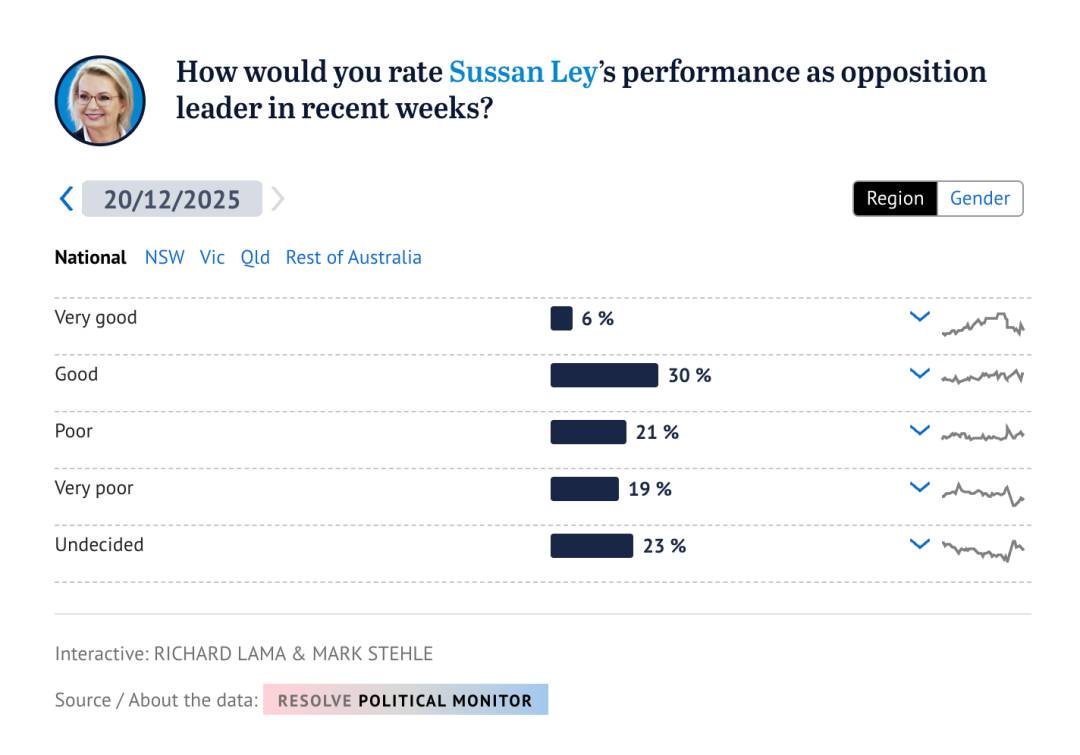 Sussan Ley 的评分同样下跌,但幅度较小。