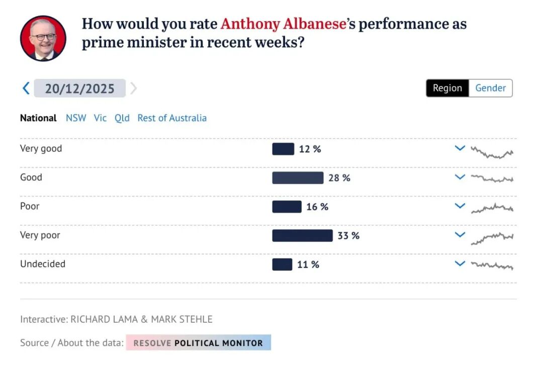 这份民调结果凸显了政治领袖当前面临的挑战:如何在回应社区对事件的深切焦虑、展现足够决断力的同时,有效团结整个国家。
