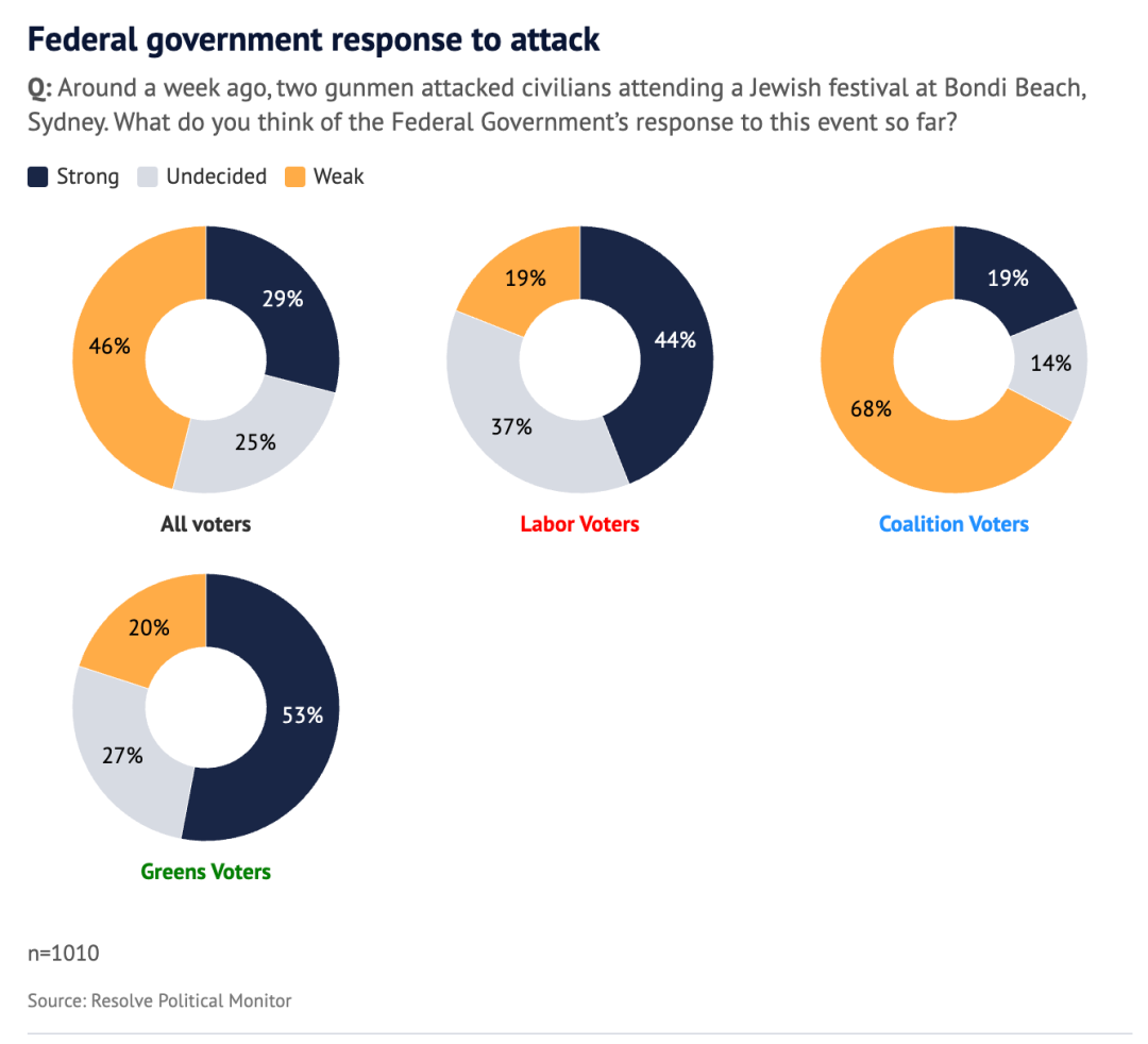 近半数选民对联邦政府在邦迪购物中心枪击案后的回应表示不满。