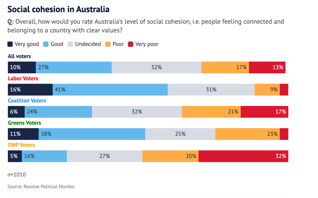 如今,澳大利亚人对于国家的社会联系与凝聚力看法分歧明显。