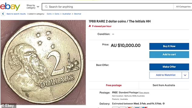 在ebay上,一枚1988年带有“HH”字样的硬币,起价就是1万澳元!