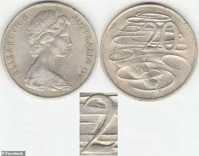 此外,Detecting Downunder还报道了1966年生产的一罕见的20澳分硬币,这枚硬币上的数字“2”因底部线条呈波浪形而受热捧。