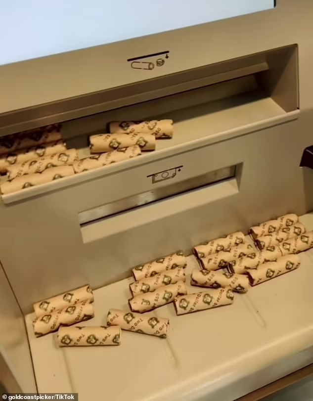 接着,他们将ATM机吐出的硬币卷拆开,并从一大堆硬币里“淘”出那些稀有且有收藏价值的硬币,再把其他普通硬币通过ATM机再存回去。