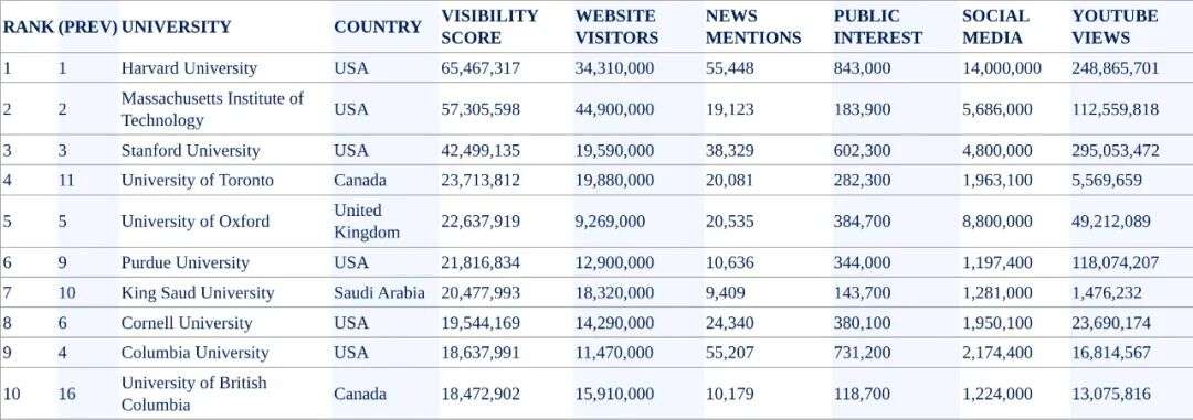 在这个大学知名度的排名中,世界前十终于来了点新意,不再全由英美的大学垄断!