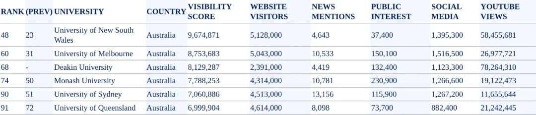 收藏全球大学知名度排名重磅发布!谁才是澳洲大学界的第一大网红?墨大仅排第二!悉大都要往后靠!第一竟是ta