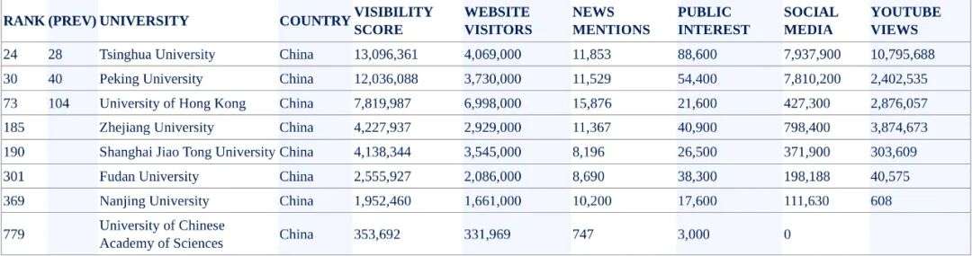 GUV排名是一个专门衡量全球1000所大学知名度的排名,看的就是大学的品牌实力和影响力。