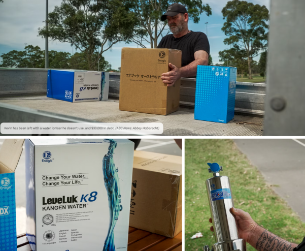 对于缺钱的、缺社会经验的,甚至缺脑子的受害者来说,价格如此高昂的净水器并不荒谬,不然那些纹身大汉是怎么在巴厘岛度假的?他们身边的E杯美女和兰博基尼又是哪里来的?