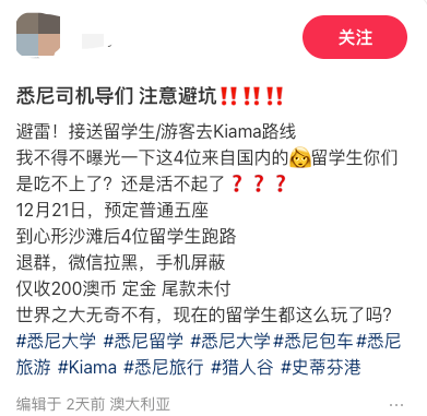 01、曝光!为了省几百澳币,四名中国留学生包车拒付尾款!集体跑路,司机被拉黑!